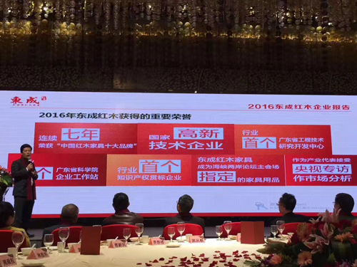 2016年,東成紅木被認定國家高新技術企業(yè)、成立了“廣東省工程技術研究開發(fā)中心”和“廣東省科學研企業(yè)工作站”、掛牌廣東省“木材科學與工程實踐教學基地”,并被授予“廣東省家具行業(yè)轉型升級示范企業(yè)”,東成紅木還牽頭建設梅州五華首個紅木家具產業(yè)園。