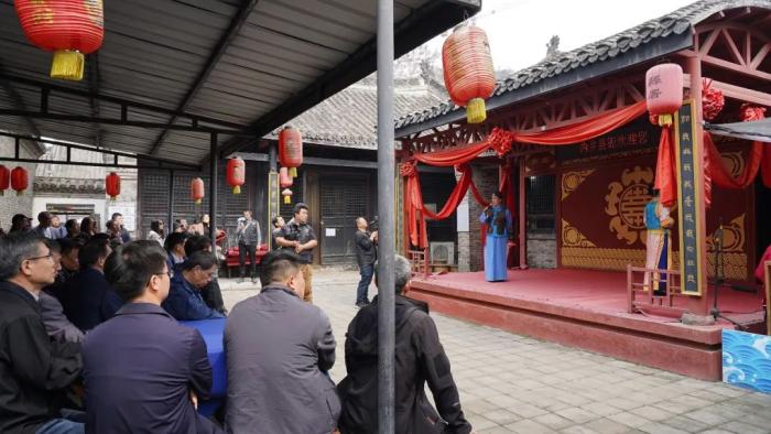 北京故宮博物院著名古建專家李永革老師還特意登著梯子,查看“大清雍正”的年款。最有意思的是,領(lǐng)導(dǎo)專家們圍坐在曲水流觴的古沉木前歇息品茗,一邊聽著著名豫劇表演藝術(shù)家演唱,真是“很河南”啊。