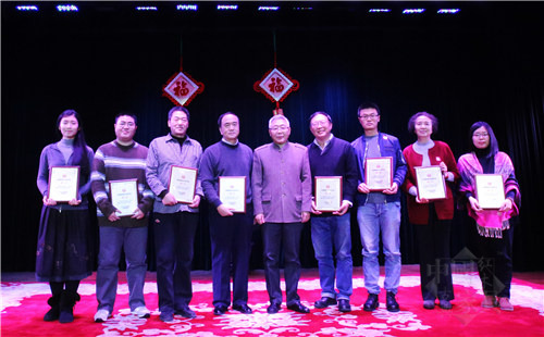 北京故宮博物院研究員、中華木工委學(xué)術(shù)委員會(huì)主任胡德生為“2016中國(guó)紫檀文化研究貢獻(xiàn)人物”頒發(fā)榮譽(yù)證書
