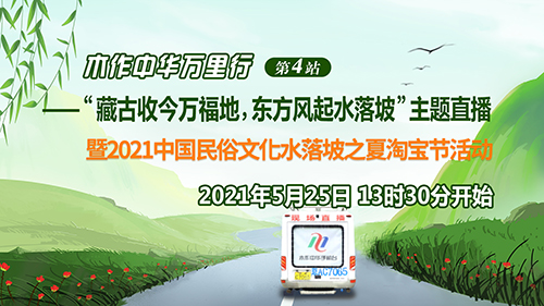 中華木工委是木作行業(yè)的專業(yè)組織,此前與鎮(zhèn)政府有過合作,古家具修復(fù)研修班在水落坡辦得很成功。如今迎來了民俗文化淘寶節(jié),這兩家便又聯(lián)起手來了,“藏古收今萬福地,東方風(fēng)起水落坡”主題直播暨2021中國民俗文化水落坡之夏淘寶節(jié)活動拉開了帷幕。