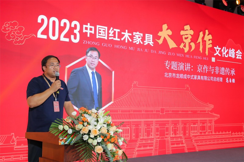 北京市龍順成中式家具有限公司經(jīng)理高志強(qiáng)先生,從京作文化與非遺傳承的角度展開演講。他從國企的擔(dān)當(dāng)與責(zé)任的角度,介紹了龍順成非遺文化建設(shè)的具體措施以及做法和經(jīng)驗(yàn)。大會(huì)認(rèn)為,作為中國紅木行業(yè)唯一的國企,唯一的“中華老字號(hào)”,唯一具有160多年傳承史的非遺單位,龍順成本身就是一桿文化大旗,它的作用和力量是不可低估的,無論過去、現(xiàn)在和將來,龍順成在京作非遺文化傳承方面都是重要貢獻(xiàn)者。