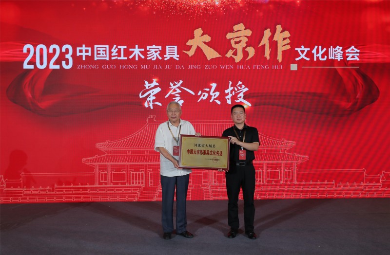 大會(huì)向大城縣授予“中國大京作家具文化名縣”稱號(hào),并頒授榮譽(yù)牌;