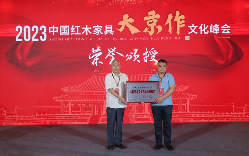 命名大運(yùn)河紅木文化館為“中國紅木文化示范基地”,并頒授牌匾;
