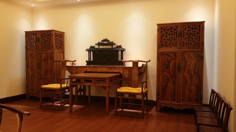 實際上,林先生進入古典家具收藏,最早還是從古典老榆木開始的。出生在北京的他對中國傳統(tǒng)文化有著濃厚的興趣,所以他對帶有歷史符號的器物的喜愛,對他來說似乎就像是與生俱來的。1999年,一次偶然機會,他在北京通州覓到了幾件老榆木的明式供案、太師椅和一駕裝飾精美木軸木輪的傳統(tǒng)轎車,這幾件古典家具映入眼簾的瞬間就被他一眼相中了,隨即他與老板談妥成交價格并委托老板給予必要的修復(fù)。這次出手應(yīng)該算是他進入收藏的開篇吧。之后有幸接觸到了黃花梨古典家具。他對黃花梨的興趣在與黃花梨接觸的那一刻便被黃花梨的天生麗質(zhì)和它所散發(fā)出的天然幽香所吸引。對黃花梨的喜愛,可以用癡迷來形容。人的興趣就是這樣,一旦癡迷,就更想鉆研學(xué)習(xí)。而越是深入的研究,興趣也就更濃。也越是掌握了專業(yè)知識,就越能感受到它的魅力和價值所在,也就越能感受到黃花梨帶給人內(nèi)心的快樂,林宇的收藏之旅正是在學(xué)習(xí)和收藏中不斷提高和完善的。