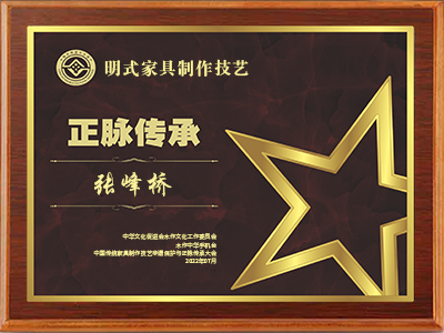 張峰橋先生作為積極響應(yīng)者,中國傳統(tǒng)家具制作技藝非遺保護(hù)與正脈傳承大會(huì)授予其“非遺保護(hù)與正脈傳承人物”。