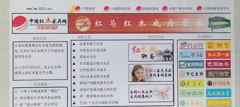 自此以后,中國紅木家具網(wǎng)順風順水,成了紅木行業(yè)的第一門戶網(wǎng)站,中國紅木行業(yè)也有史以來第一次有了自己的專業(yè)媒體。再后來,紅木家具網(wǎng)更名為紅木古典家具網(wǎng),并幾經(jīng)改版,一直延續(xù)至今。再后來又辦《中國紅木古典家具》雜志、《紅木》雜志,等。一晃20多年了?;叵肫饋?,我能走上紅木這條路,還真得感謝楊波老弟呢!