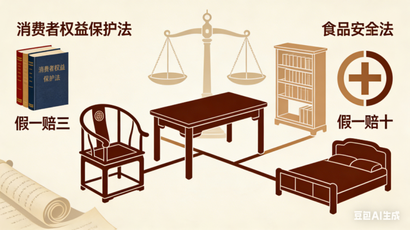 在法律層面,“假一賠三”是《消費者權(quán)益保護法》為普通商品設(shè)立的底線,適用于絕大多數(shù)消費場景。而“假一賠十”原本是懸在食品、藥品領(lǐng)域的“達摩克利斯之劍”,源于《食品安全法》對民生關(guān)鍵領(lǐng)域的特殊保護。當這套更嚴苛的標準被移植到紅木家具行業(yè)時,其象征意義已遠超法律條文本身。